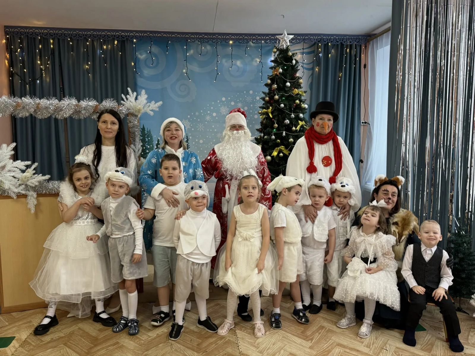 Вот и прошли новогодние праздники в детском саду, но Новый год шагает по планете. Предлагаем посмотреть фото с праздника в группах 1 и 3. Было весело: дети посмотрели новогодний кукольный спектакль, сварили волшебную кашу со Снеговиком, угостили лесных зверей гостинцами - Медведю - мед, Лисе - конфеты, Зайцу - морковку. А хороводы и игры вызывали очень большую радость.