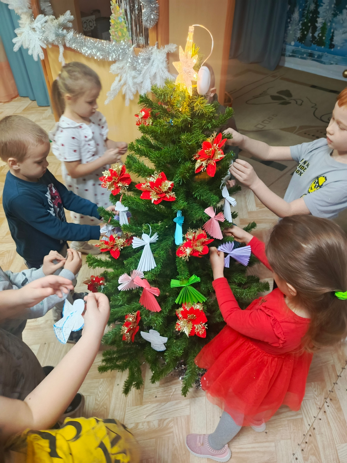 Традиционно во время Рождественской недели в нашем саду проходят мероприятия, посвященные данной тематике. Началась неделя с просмотра фильма "Рождество", затем дети читали книги, смотрели мультфильм "Рождественская сказка", изготавливали ангелочков. А наибольший интерес и эмоции вызвал интерактивный кукольный спектакль "Рождественская Ёлочка". Вначале мероприятия было представление, подготовленное педагогами детского сада, а затем дети нарядили Рождественскую елочку, водили хороводы. Во время тренинга дети и педагоги высказали пожелание на будущий год.